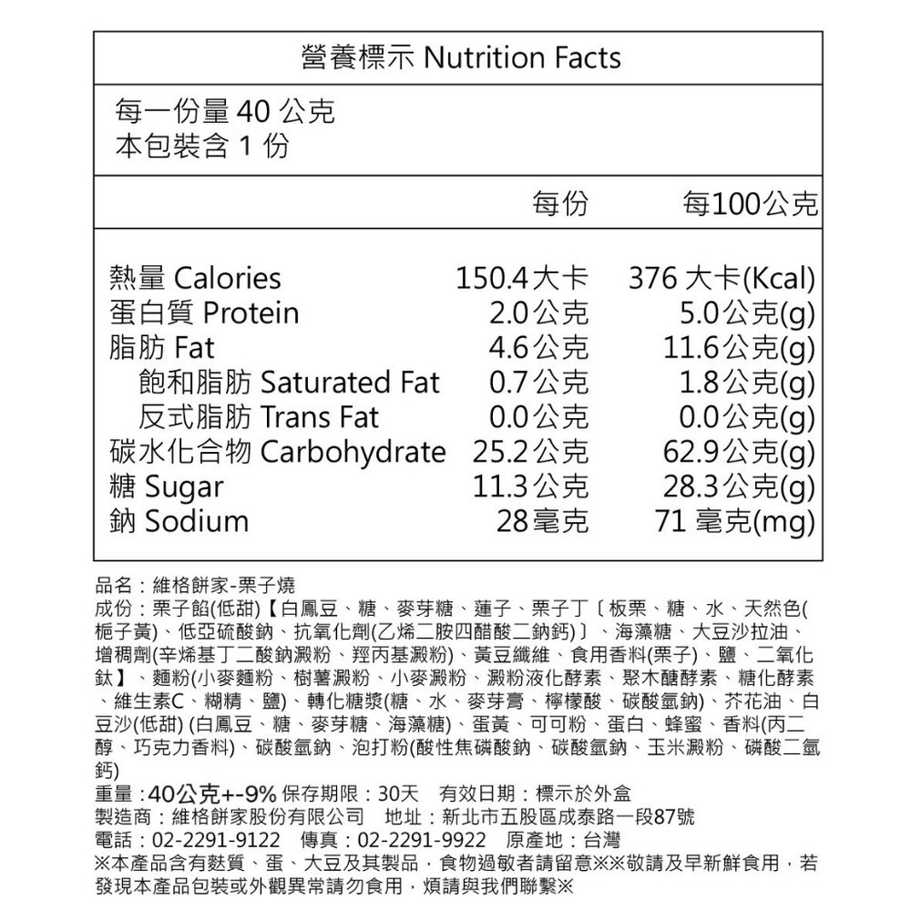 重 量:芋泥酥60公克/份;栗子燒40公克/份