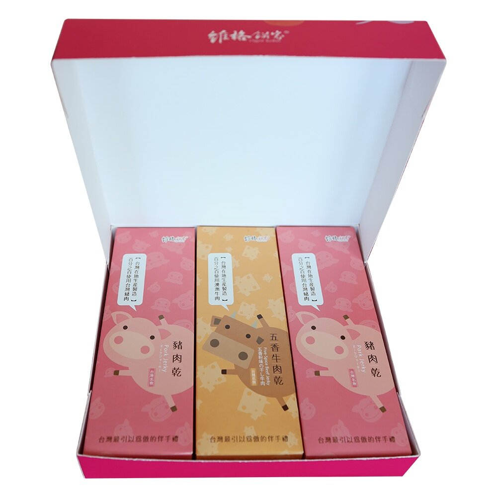 商品組合/規格:豬豬牛好運禮盒(豬肉乾、五香牛肉乾搭配3盒)