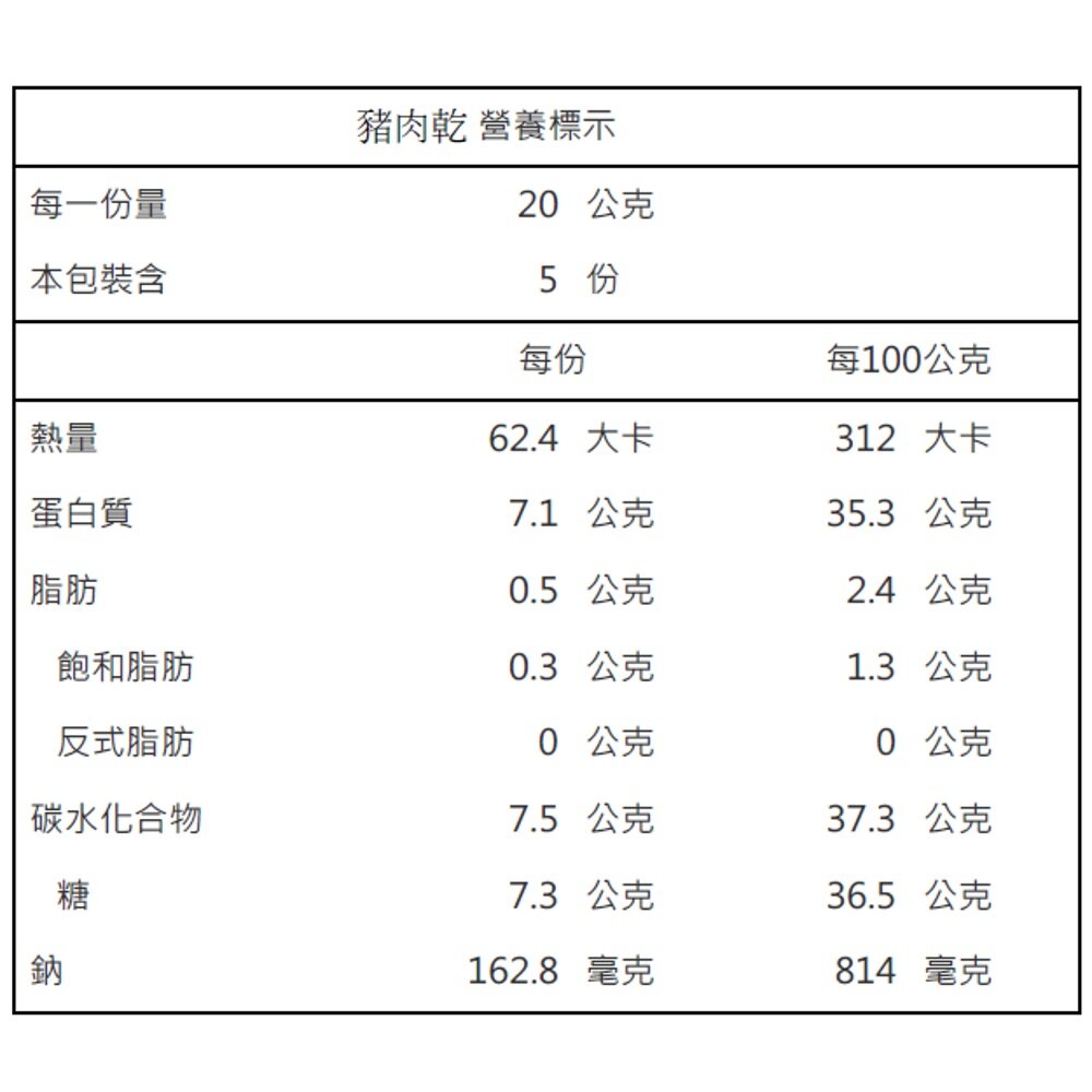 重量: 豬肉乾淨重:100公克±5%/份、牛肉乾淨重:80公克±5%/份