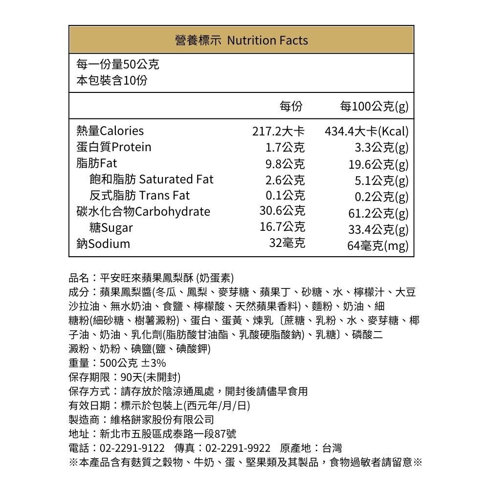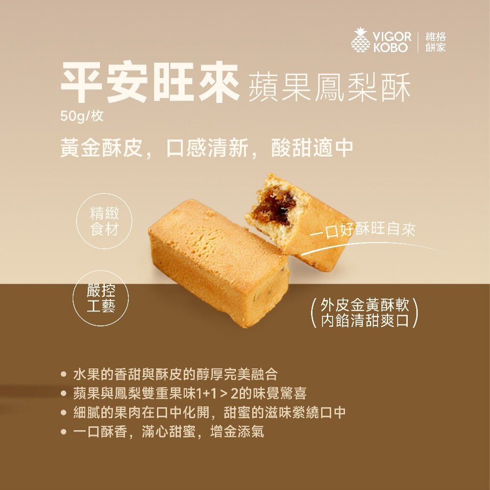 📢 此為預購商品,如有急需請勿下單 📢 下單1即出2盒 📢 商品附贈精美送禮提袋(除南棗核桃糕之外) 📢 購買1組即贈送輕伴盒-草莓煉乳雪花餅*1盒 📢 購買3組請選擇宅配 品 名:平安旺來蘋果鳳梨酥10入 成 份:詳見商品圖片 保 存 期 限:平安旺來蘋果鳳梨酥10入-90天 重 量:詳見商品圖片 產 地:台灣 *商品出貨時,確保剩餘效期達保存期限1/2以上*