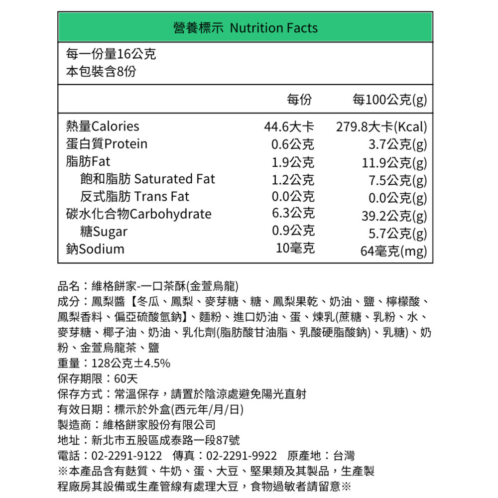 *為確保商品口感與風味,維格餅家部份商品採接單現做,因此部份商品備貨天數較長*