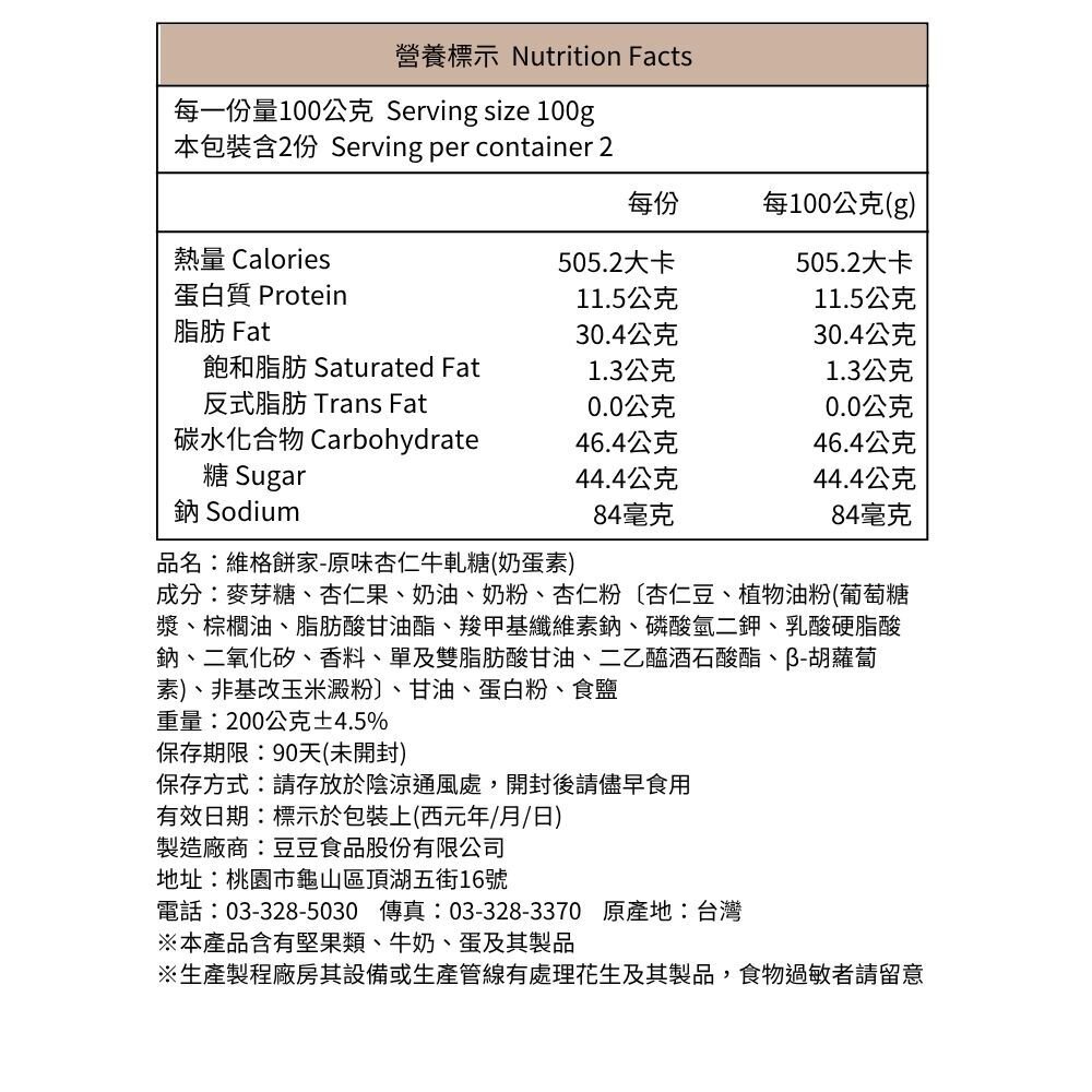 品 名:杏仁牛軋糖200g