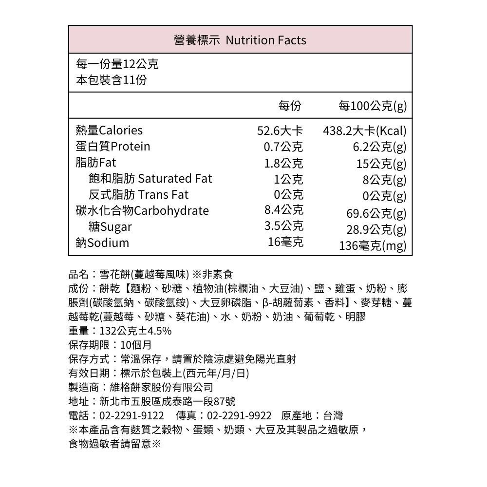 品 名:雪花餅(蔓越莓)11入盒X2盒
