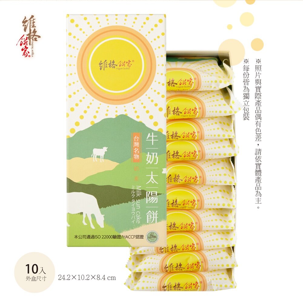 【維格餅家】牛奶太陽餅10入|銷售冠軍・奶香濃郁・台灣伴手禮必買|官方旗艦店