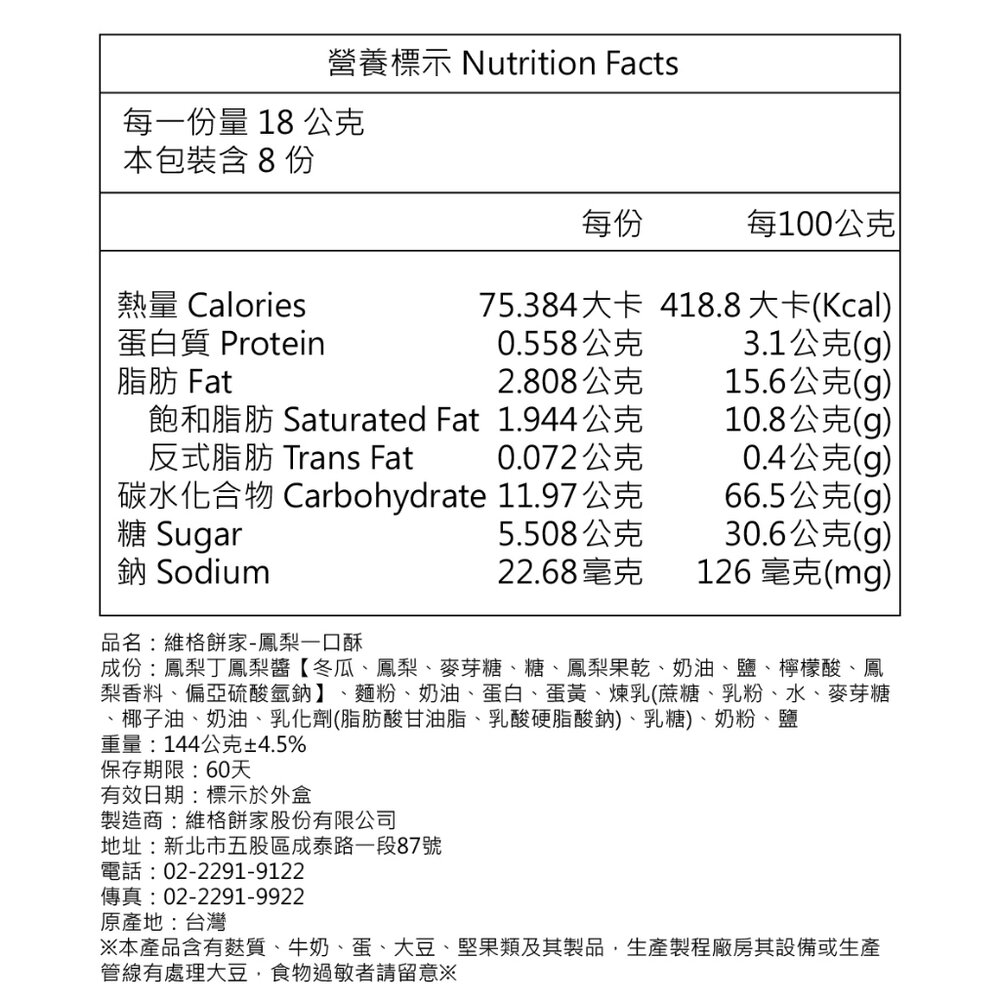 品 名:鳳梨一口酥8入
